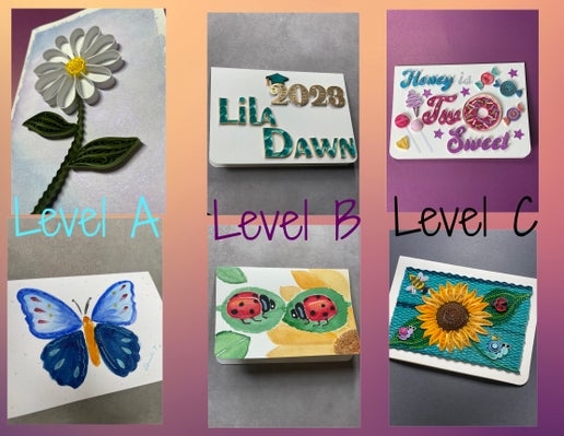 Custom Art Quilled/Painted Card 5" x 7" Cream - Level A/B/C